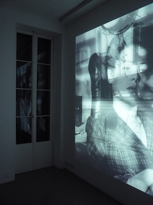 When exhibited for the first time in Marseille, at Où, Lucy’s dream was presented in a space opening out through two sets of French windows (upon which, at night, the projected images would reflect and duplicate the raging torrents), with crumpled sheets of white paper arranged on the floor, echoing the foam of the waves crashing against the rocks in the montage, with both correspondences serving to instigate a pathway for communication between the room in which Lucy Muir is shown and that inhabited by visitors, in the aim of promoting the transmission of emotions between the two spaces.