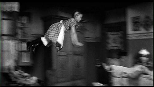 Heurté, le montage use de la répétition pour mieux marquer la tyrannie exercée par l’enfant sur son partenaire. Tout en soulignant la détermination de la fillette à arriver à ses fins, elle accentue l’artificialité du jeu de ce dernier pour l’apparenter à une sorte de marionnette qu’elle parviendrait, en s’imposant continuellement à lui, à manipuler parfaitement. Si le montage rappelle par ses effets de réitérations sonores certaines œuvres expérimentales de Martin Arnold, ce sont davantage les ressorts du cinéma burlesque qui se trouvent exploités pour mieux mettre en relief toute la saveur comique de la scène de Mel Brooks de façon à servir cette dénonciation. Conditionné par le mouvement de balancier de la balançoire, le détournement de la fin de la séquence filmique travaille au même effet.